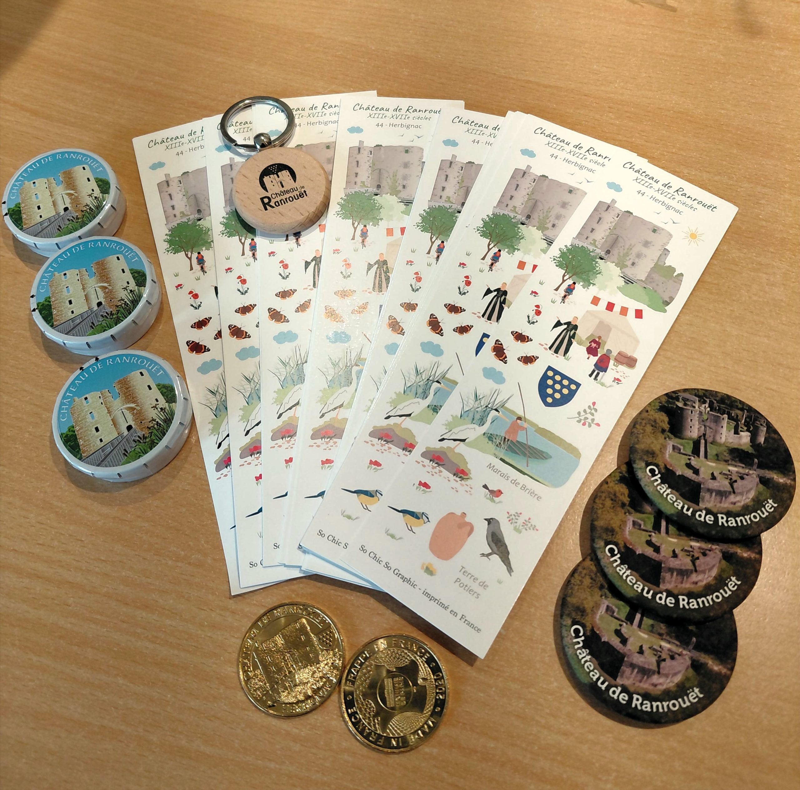 Cartes postales, magnets, marque-pages, boîtes métalliques et porte-clés exclusifs « Château de Ranrouët » : des petits formats faciles à glisser dans une valise, pour garder un souvenir durable de votre visite.